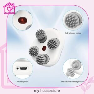 ده جهاز تدليك كهربا لفروة الراس والجسم، بييجي بـ 4 مخالب سيليكون مرنة قابلة للفك والتركيب، يعني ينفع تنظفه بسهولة.